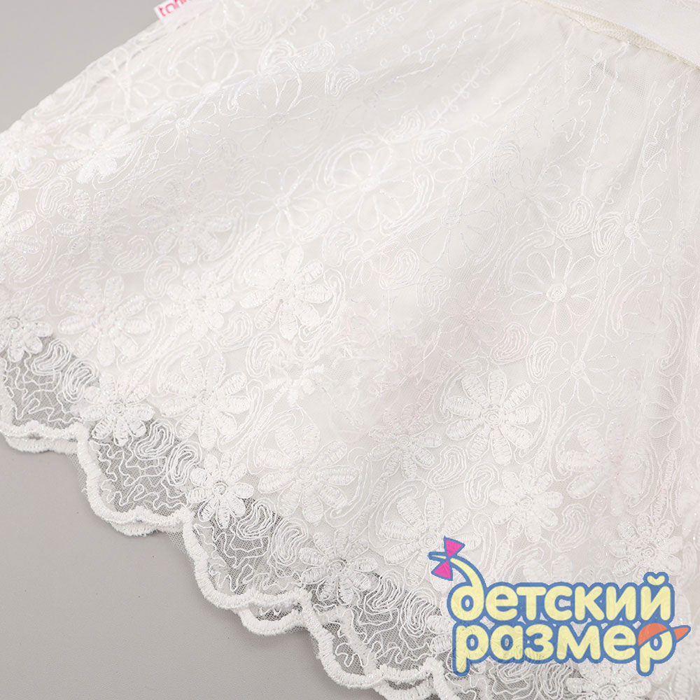- верхний слой юбочки оформлен мягким кружевным гипюром