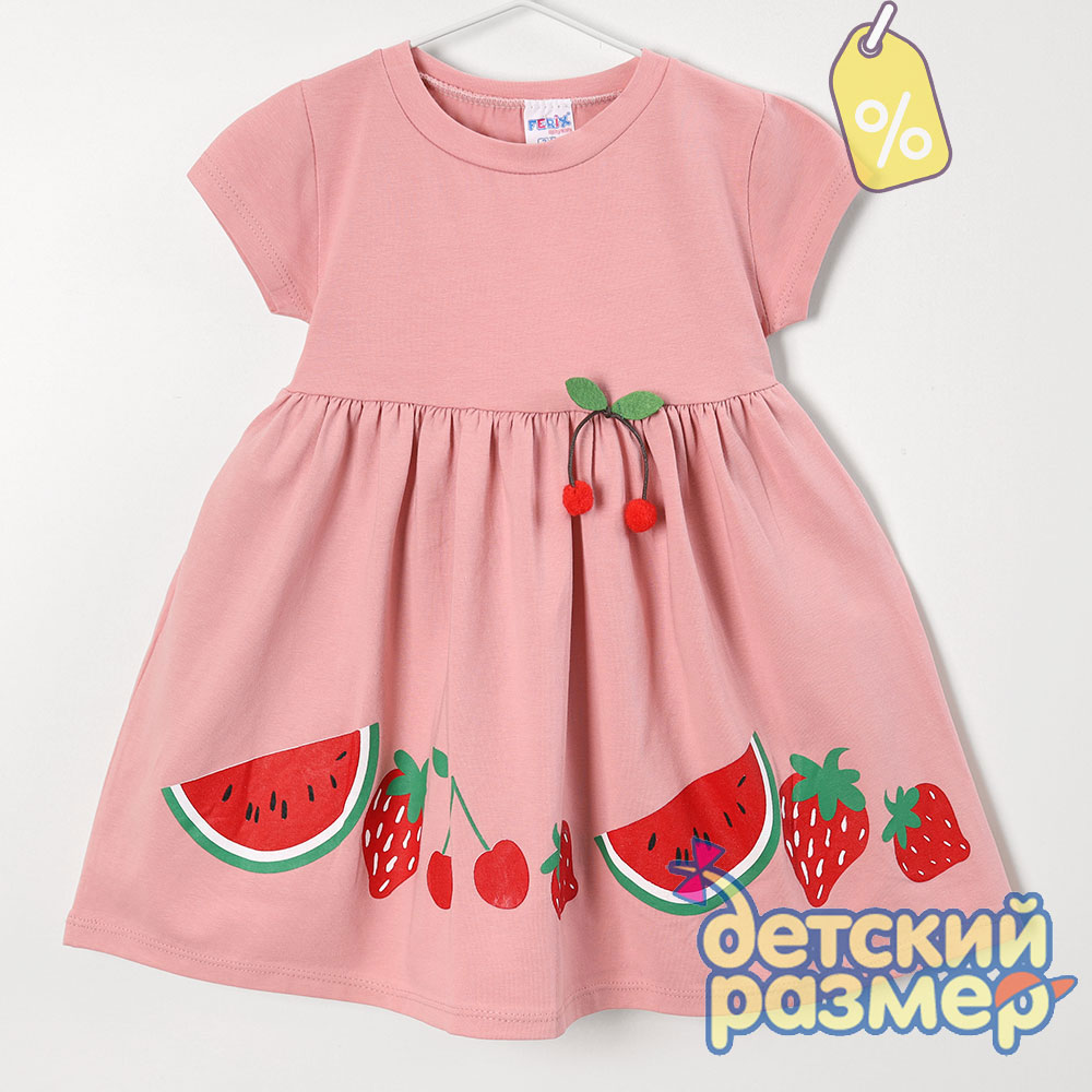 УЦЕНЕННЫЙ ТОВАР | ДЕФЕКТ: отпечаток от принта сзади на подоле, немного потрескался принт на клубничке (см. доп. фото)