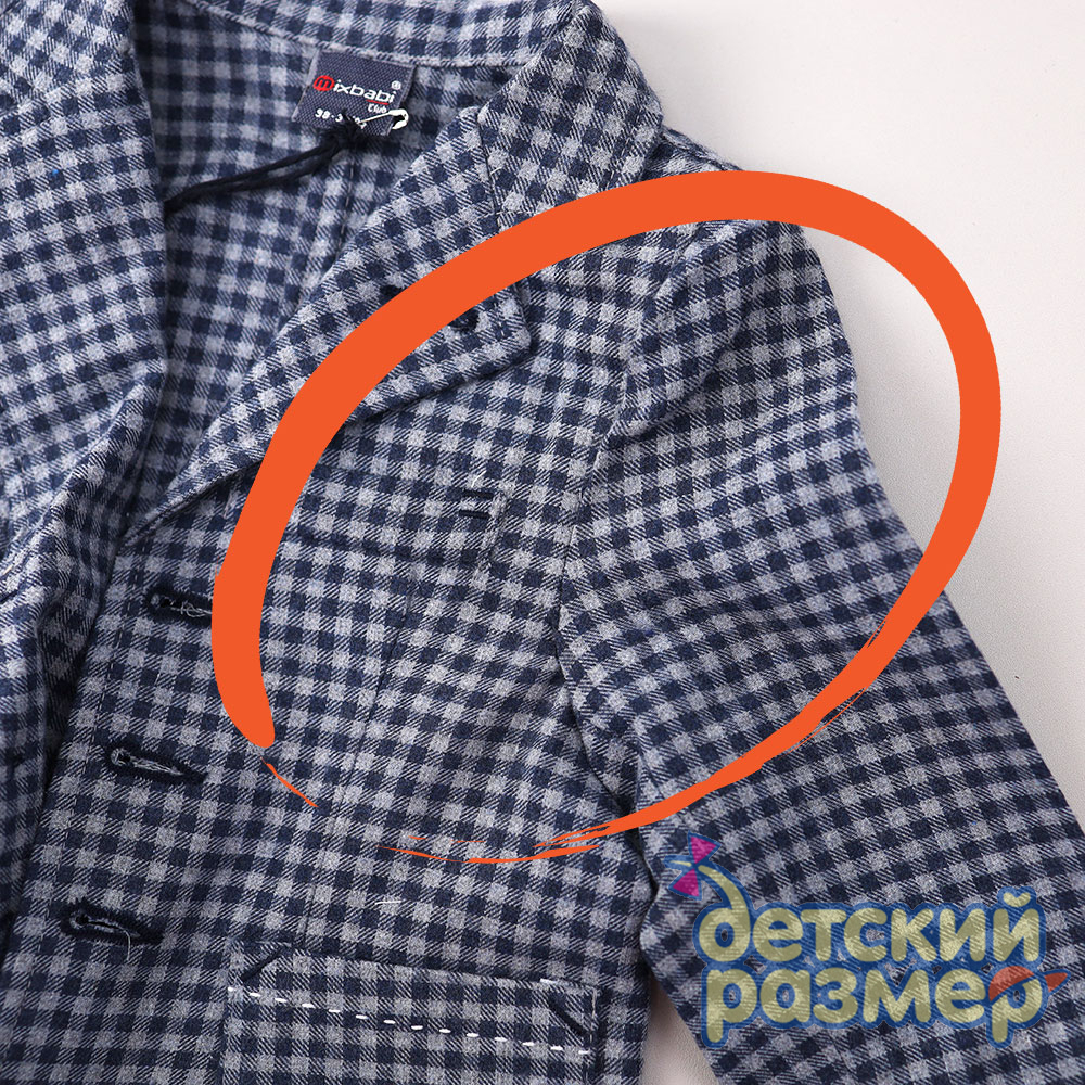 - пиджак из качественного текстильного материала, застегивается на пуговицы, по бокам кармашки, также есть плечики из поролона для поддержания формы