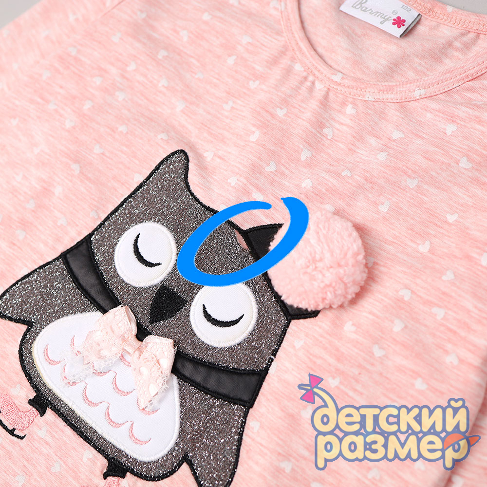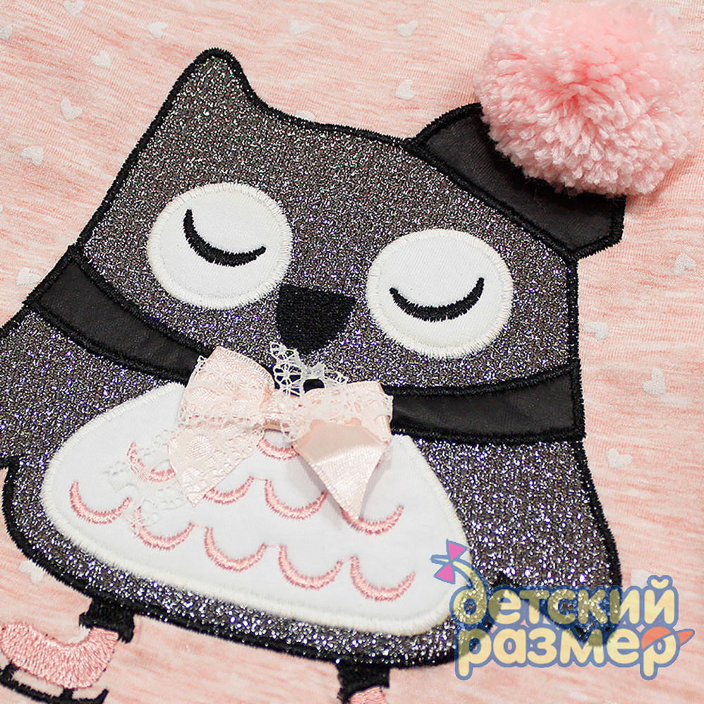 - украшена аппликацией сова с помпоном, на милом тоне в точку