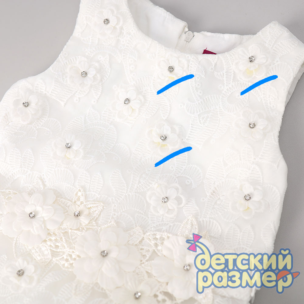 - верхний слой лифа из легкого текстильного материала с вышивкой и декоративными цветочками со стразами;