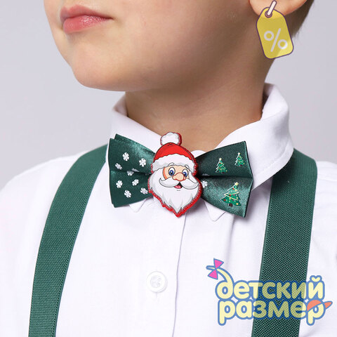 - бабочка украшена нашивкой с новогодним персонажем