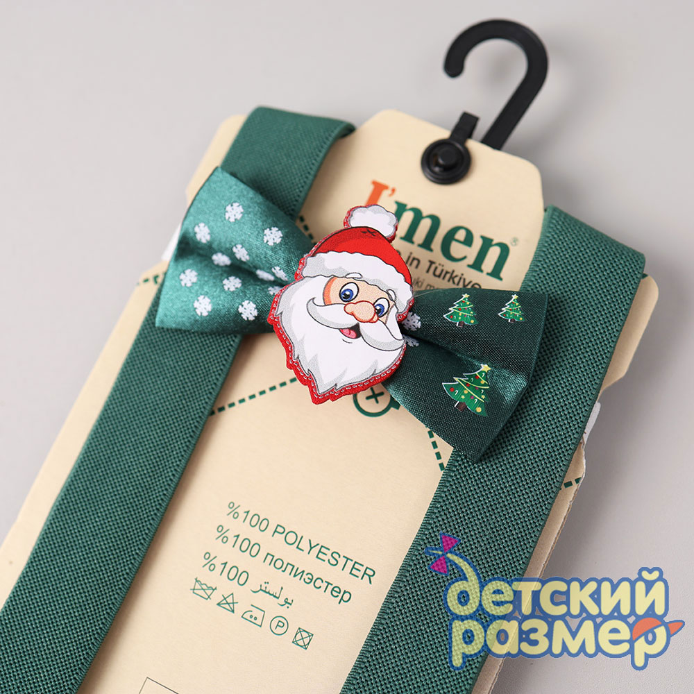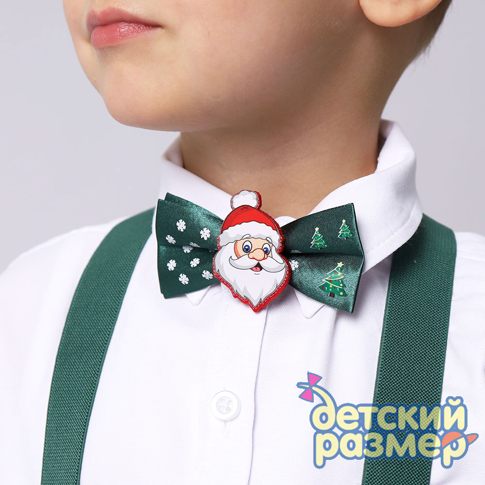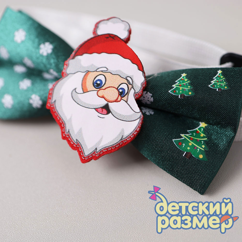 - бабочка украшена нашивкой с новогодним персонажем