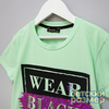 - однотонная расцветка с текстовым принтом на груди