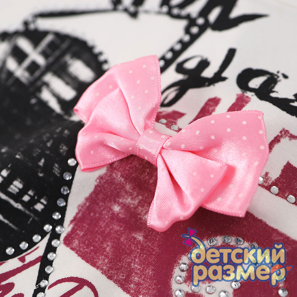 - яркий интересный принт дополнен мелкими стразами, на груди декоративный бантик