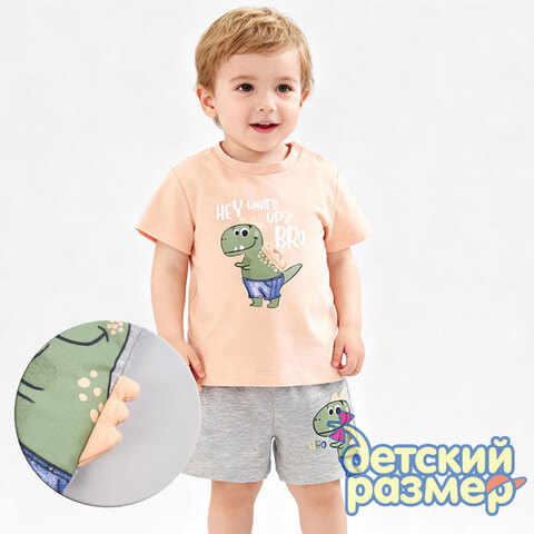 - принт дополнен объемным гребешком на футболке и шортах