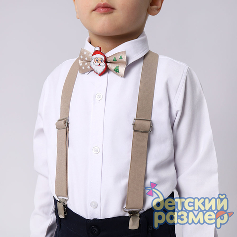 - бабочка украшена нашивкой с новогодним персонажем