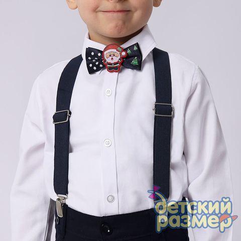 - бабочка украшена нашивкой с новогодним персонажем